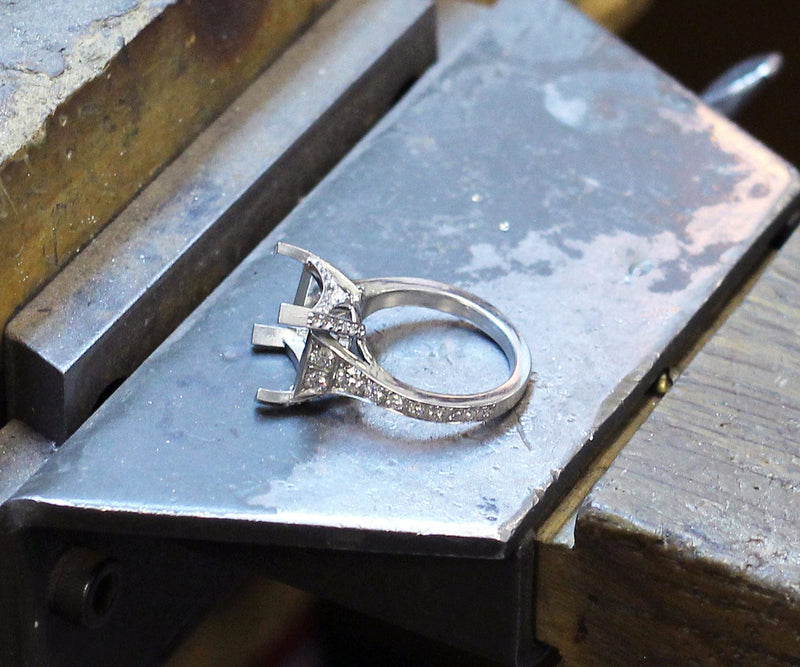 We will size gold, platinum and silver rings to a larger or smaller size, plus we repair broken shanks and replace lost stones. We will inspect all prong work and tighten or re-tip prongs where necessary.